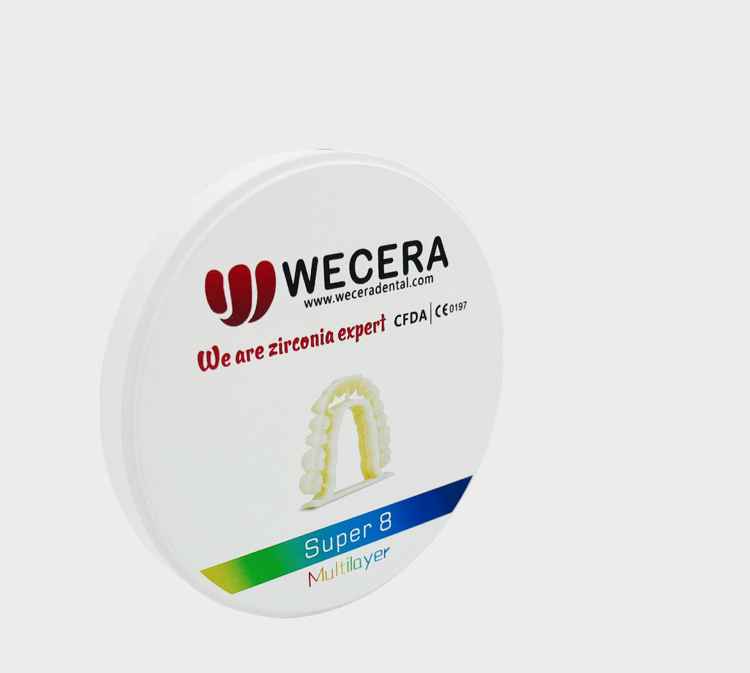 8 warstw wielowarstwowej cyrkonii, z większą liczbą warstw, wygląd jest bezszwowy. Ten materiał cyrkonowy umożliwia stworzenie mostu o długości do 14 jednostek bez żadnych deformacji po procesie spiekania.